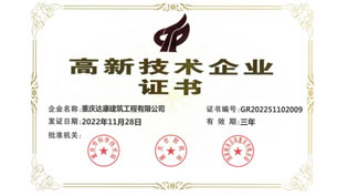 喜訊,重慶達康建筑工程有限公司順利通過重慶市科學技術(shù)局、重慶市財政局、國家稅務(wù)總局重慶市稅務(wù)局等部門的聯(lián)合評審驗收,被正式認定為“高新技術(shù)企業(yè)”,榮獲《高新技術(shù)企業(yè)證書》。